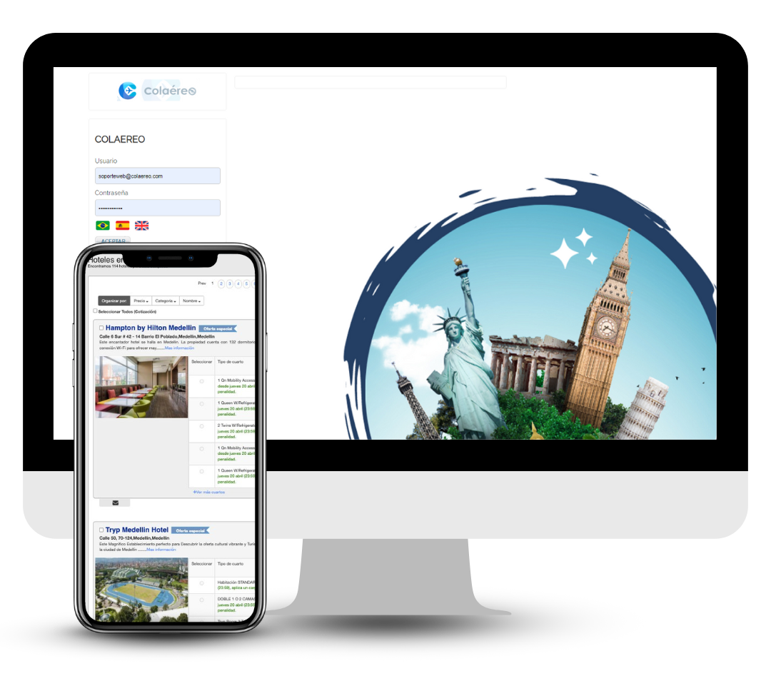 En un mismo lugar encuentra Vuelos Nacionales e Internacionales, hoteles y todos nuestros servicios.